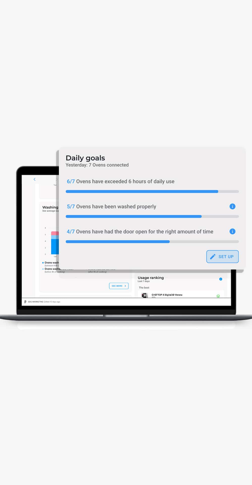 Get a real-time overview of all your connected ovens across multiple kitchens, and take action exactly where it’s needed. Never lose track of your ovens' consumption and use data to inspire more efficient behaviors in all point of sales.